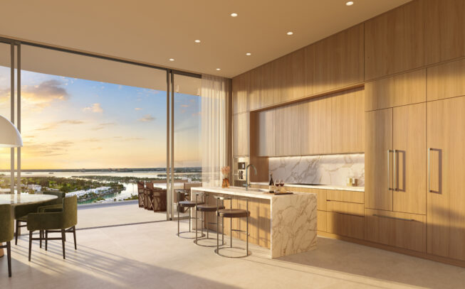 Meticulously detailed and masterfully designed by Piero Lissoni, each condominium residence embodies a refined balance of elegance and functionality. Expansive private terraces extend the living space outdoors, with select homes featuring an outdoor wet bar for seamless entertaining against the backdrop of panoramic ocean, Intracoastal, and park views. Elevated ceiling heights of up to ten feet and floor-to-ceiling sliding glass doors, crafted from impact-resistant glass, flood interiors with natural light while maintaining comfort and security. High-speed elevators provide effortless access, ensuring both privacy and convenience for every resident.