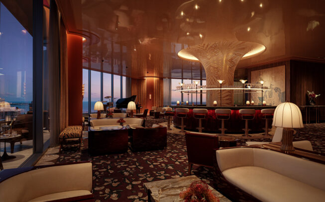 Perched on the 64th floor, Faena Beach offers a sky-high oasis with sweeping views of Biscayne Bay and the entire Miami skyline. This elevated paradise blends the serenity of an infinity pool with the thrill of a “sky promenade,” where guests float above the city in effortless style. With Faena Signature Service, red-and-white cabanas, and the sensation of being suspended between sea and sky, Faena Beach redefines high-altitude indulgence— turning every sunset into a cinematic experience.